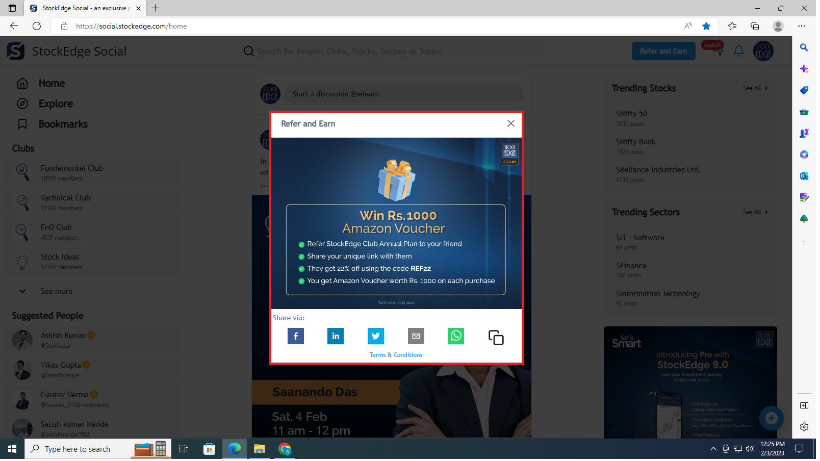 - Your friend clicks on the link and purchases the StockEdge Club using coupon code “REFER” and gets the best discount available on purchasing StockEdge Club